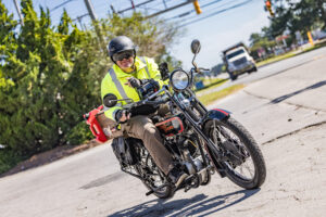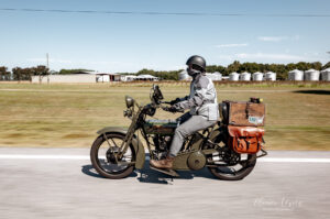 Brianna took on the same “slow and steady” mindset as her teammates, and it paid off. She rode a 1920 Harley-Davidson, which was a big change from her usual 1929 Indian, but you’d never know it by watching her ride. She adapted to the Harley’s toe to go like she’d been riding it forever. After each day’s run, you’d find her doing maintenance, getting her bike ready for the next leg. Brianna was also the only woman to make all her miles, go Brianna! Brianna also writes a blog about all of her adventures on antique motorcycles, find it here.