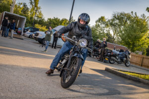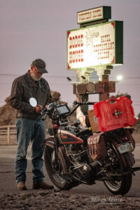 Once all of that is handled, it is time to head to breakfast. Mileage Master stickers need to get out, and the route maps for the day need to be handed to every rider. After that, we move outside where the riders are already starting to gather around their antique motorcycles, getting them ready for whatever the day is about to bring.
