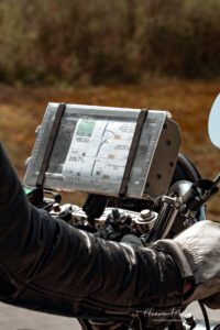 Slowly, riders start trickling outside. Oil levels are checked. Machines are warmed up. Some mornings it is cold cold. We saw temperatures as low as 36 degrees. Last minute repairs are made, and paper maps are carefully loaded into map holders. Tape goes over the top of the map holders so if it rains the maps stay dry and readable.
