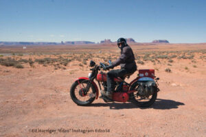 Tim Burns. Tim was part of our board from the beginning and was such an important voice to have. He rode a 1925 JD and was the very first person to sign up and believe in us. Tim made it 2,632 miles until his JD finally gave up in the middle of the desert in Monument Valley. He was stuck out there in the heat waiting on the sweep truck, but Connor found him and towed him to the nearest gas station. Tim kept going, though. When we got close to his home in Oregon, he grabbed another bike so Matt could keep riding too.